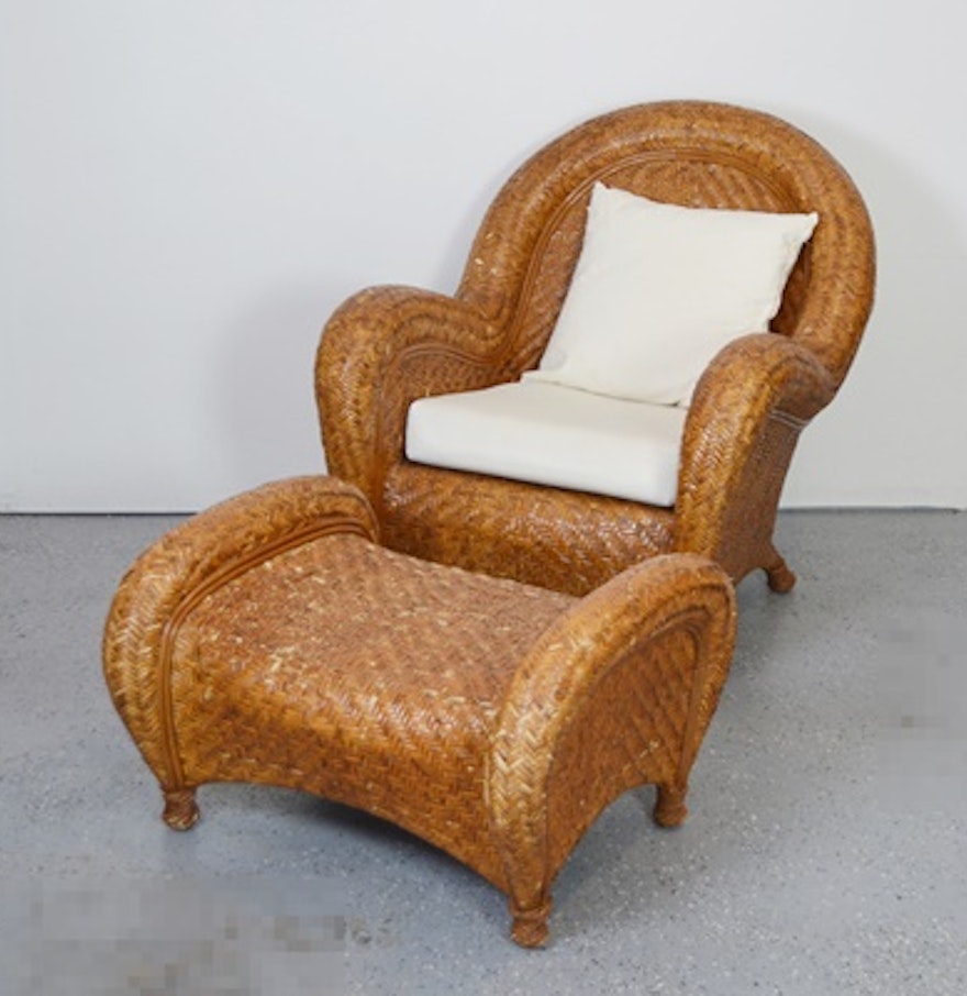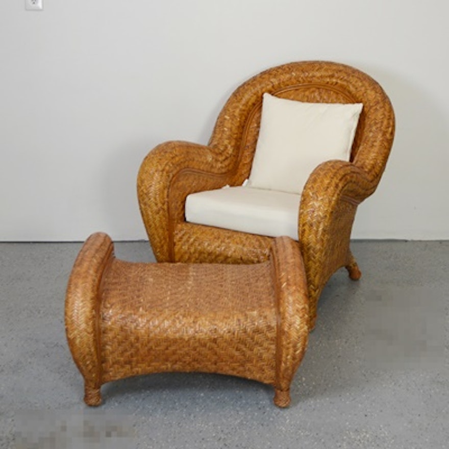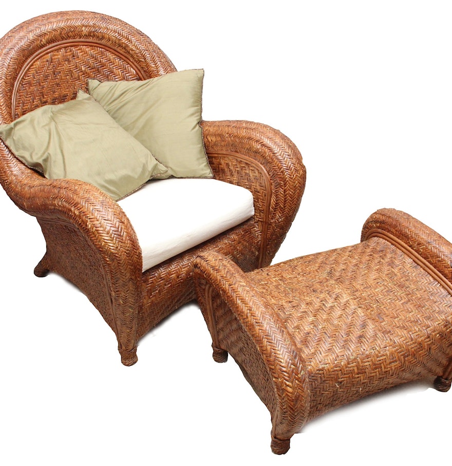 Pottery Barn Woven Rattan Chair and Ottoman : EBTH
